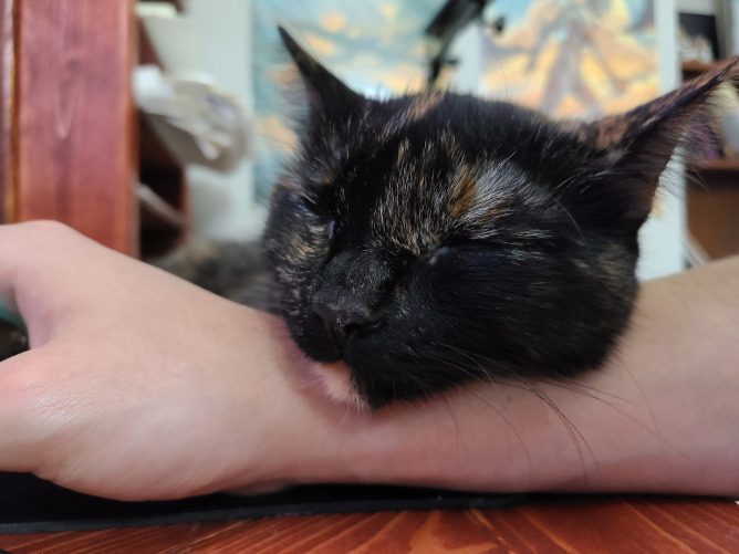 Ruma is my wonderful tortoiseshell cat, she's 3 years old and was found abandoned in a ditch when she was about a month old. She loves hanging out on the patio, sunbathing and sleeping under the covers with me. She also enjoys being held like a baby!